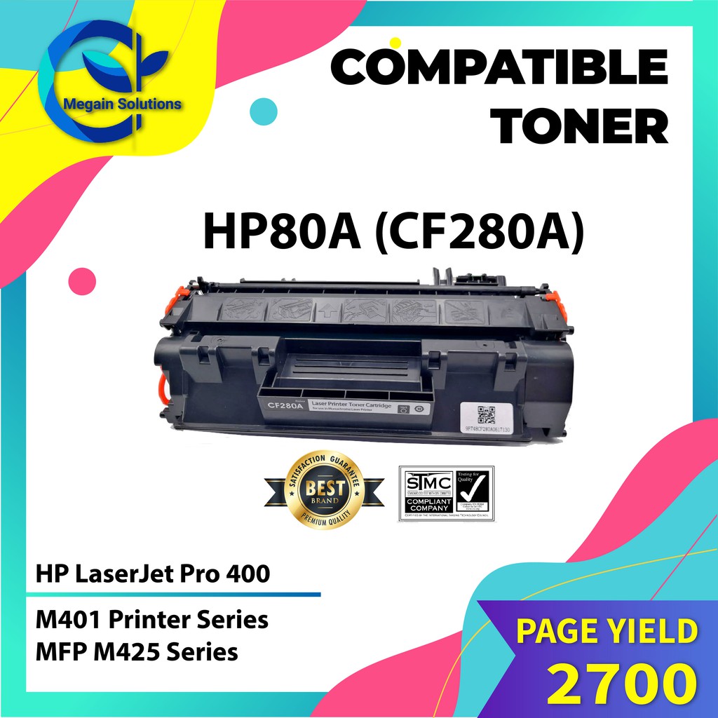 Hassle free returns, 100% moneyback. Save up to 80% on hp laserjet pro 400 m401dne toner cartridges. Our premium remanufactured hp 80a black toner cartridge is available in two options: Up to 2, 700 pages at 5% coverage. Hp compatible 80a (cf280a) black laser toner cartridge (up to 2,700 pages).